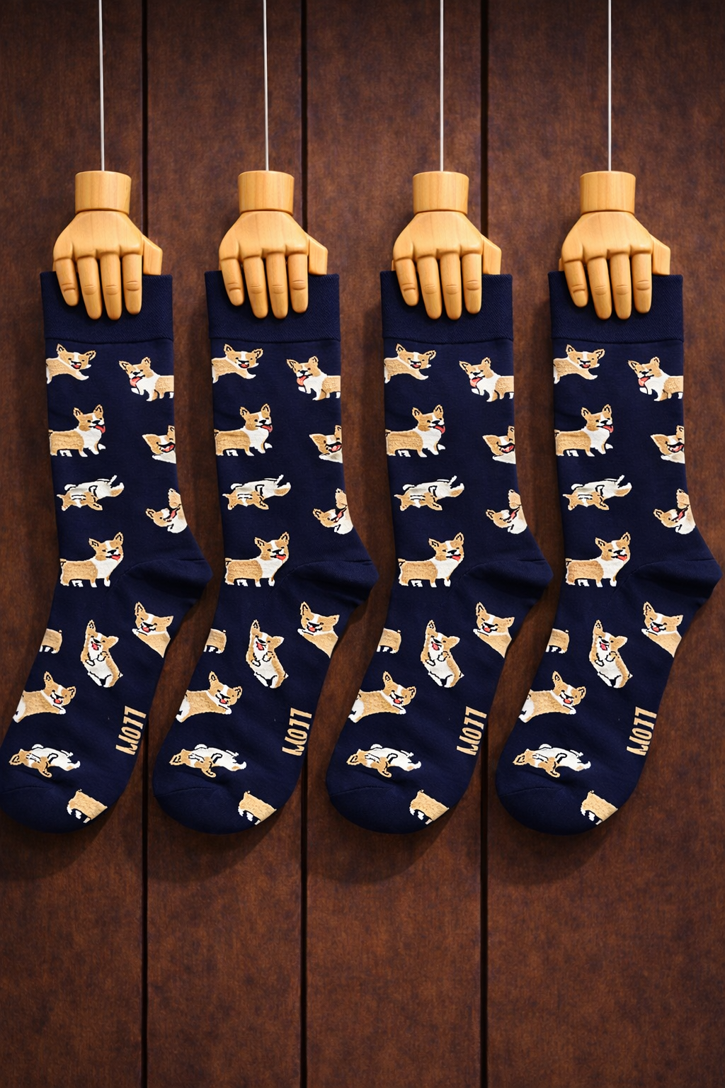 Granatowe skarpetki z motywem corgi to połączenie wygody i uroczego stylu. Miękki materiał zapewnia komfort przez cały dzień, a wesoły wzór z pieskami dodaje charakteru każdej stylizacji. Idealne dla miłośników psów i oryginalnych dodatków.