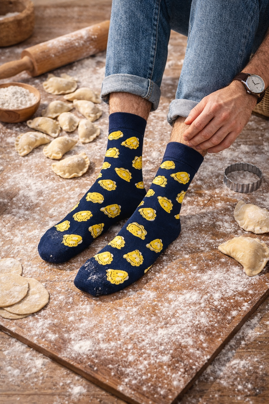 Wznieś swoje skarpetki na wyższy poziom kulinarnego stylu z naszymi skarpetkami w pierogi. Twoje nogi będą czuły się jak w kuchni babci – ciepło, komfortowo i z odrobiną humoru. Bo kto powiedział, że nie możesz mieć pysznych pierogów na nogach, nawet jeśli nie masz ich na talerzu?