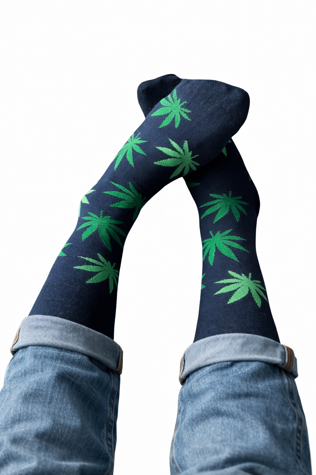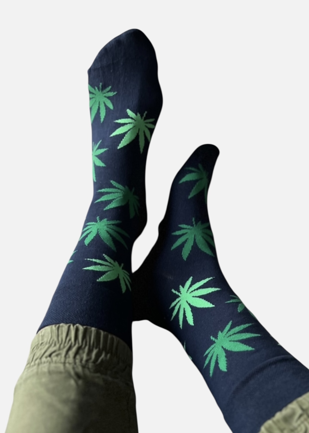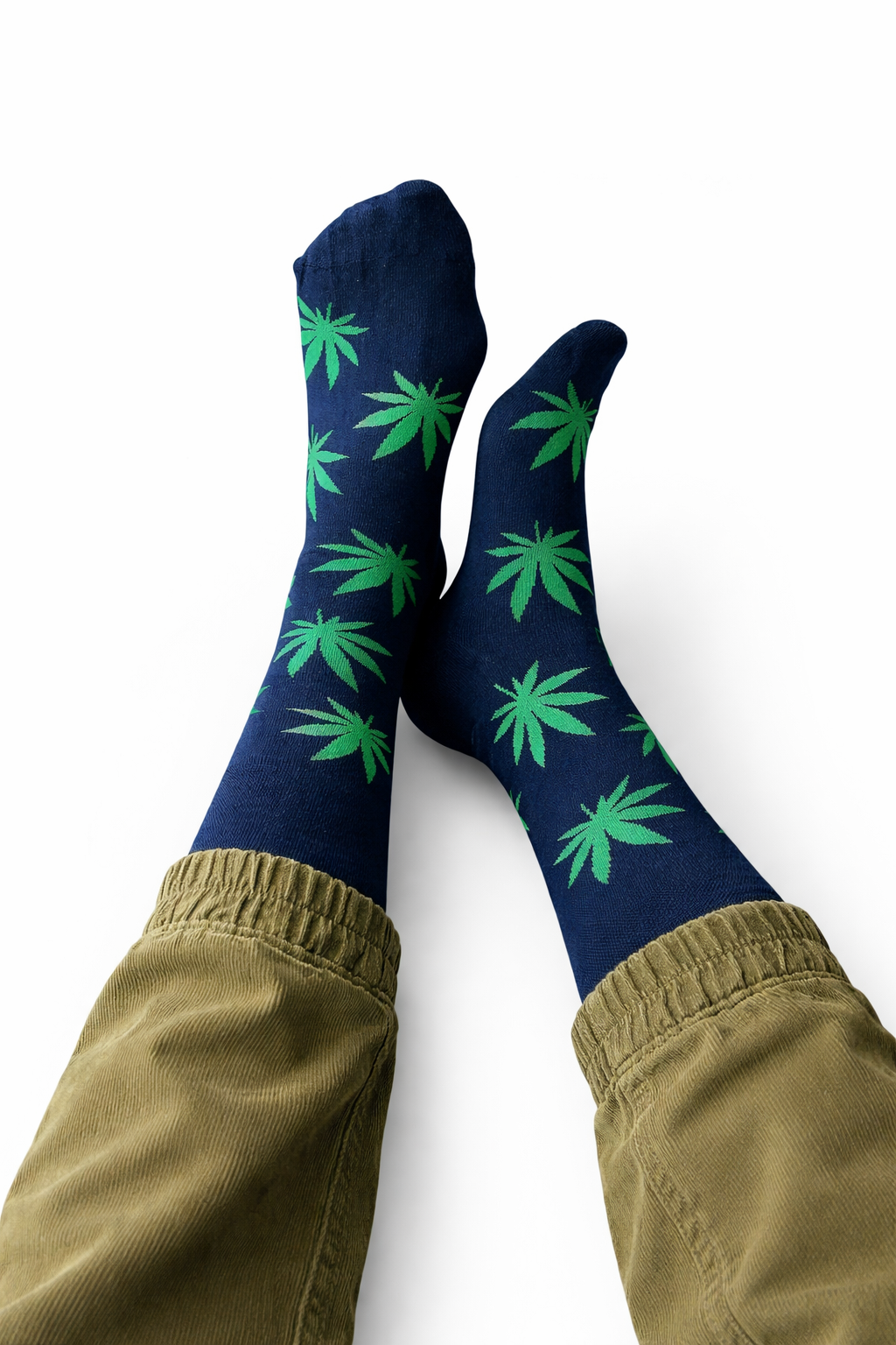 Kolorowe skarpetki granatowe w zielone liście konopi