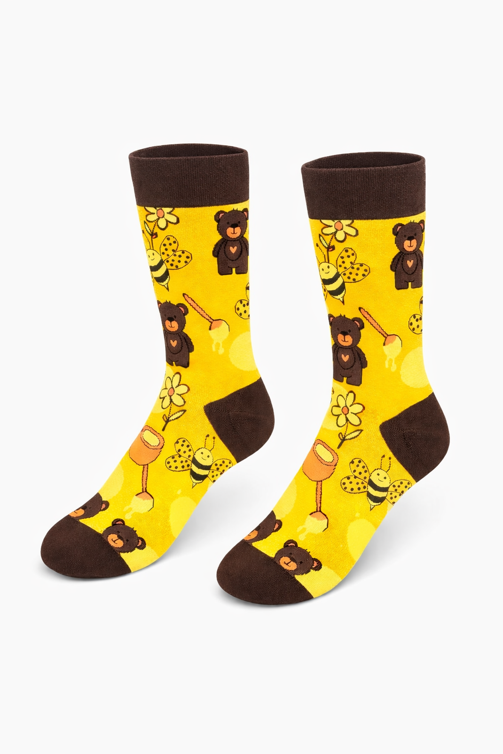 Wzbogać swoje stopy o miodowo-misiowy urok z naszymi skarpetkami! Nasze skarpetki to idealne połączenie misiowych przytulasków i miodowej słodyczy, które sprawią, że Twoje stopy poczują się jakby były całkowicie zanurzone w przytulnej, słodkiej atmosferze.