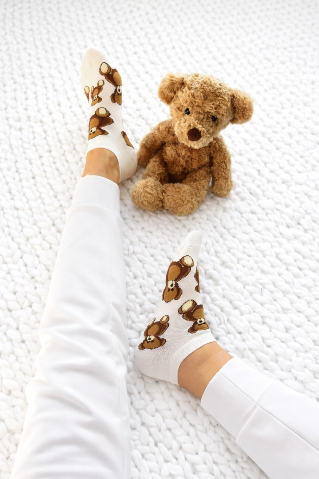 Zanurz się w przytulności z naszymi kremowymi skarpetkami, ozdobionymi uroczymi brązowymi misiami. Te skarpetki nie tylko zapewniają wyjątkowy komfort dzięki wysokiej jakości bawełnie, ale także wyróżniają się swoim unikalnym wzorem, który sprawi, że każde spojrzenie na nie wywoła uśmiech.