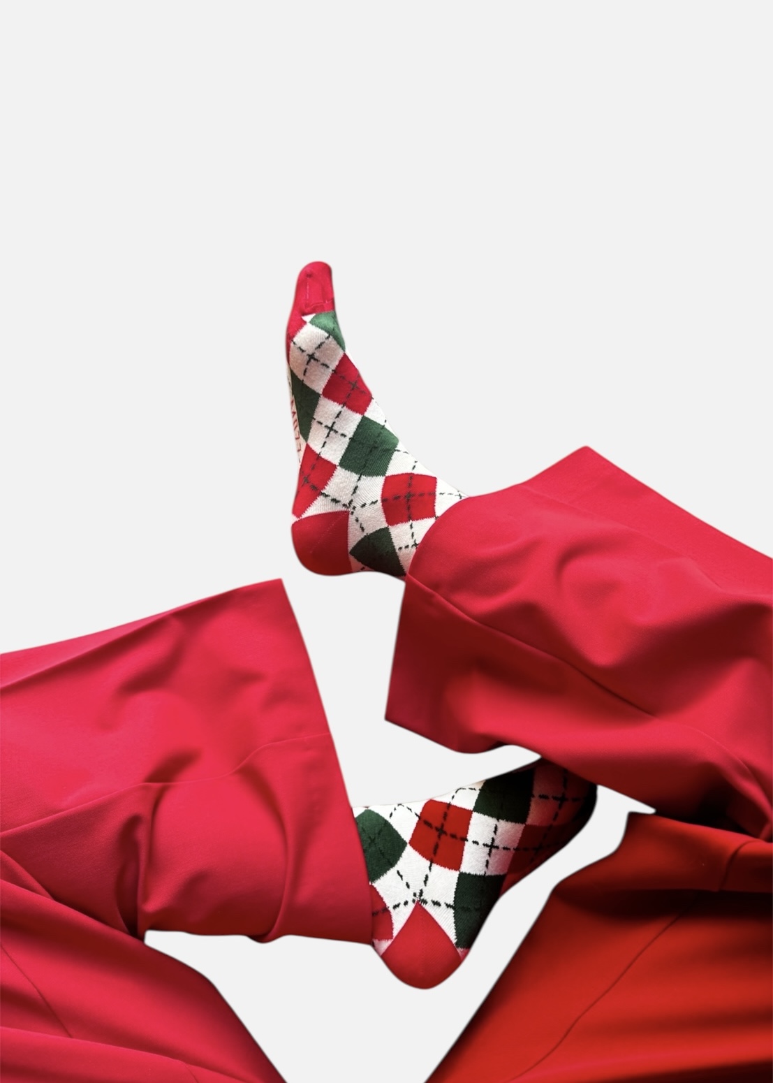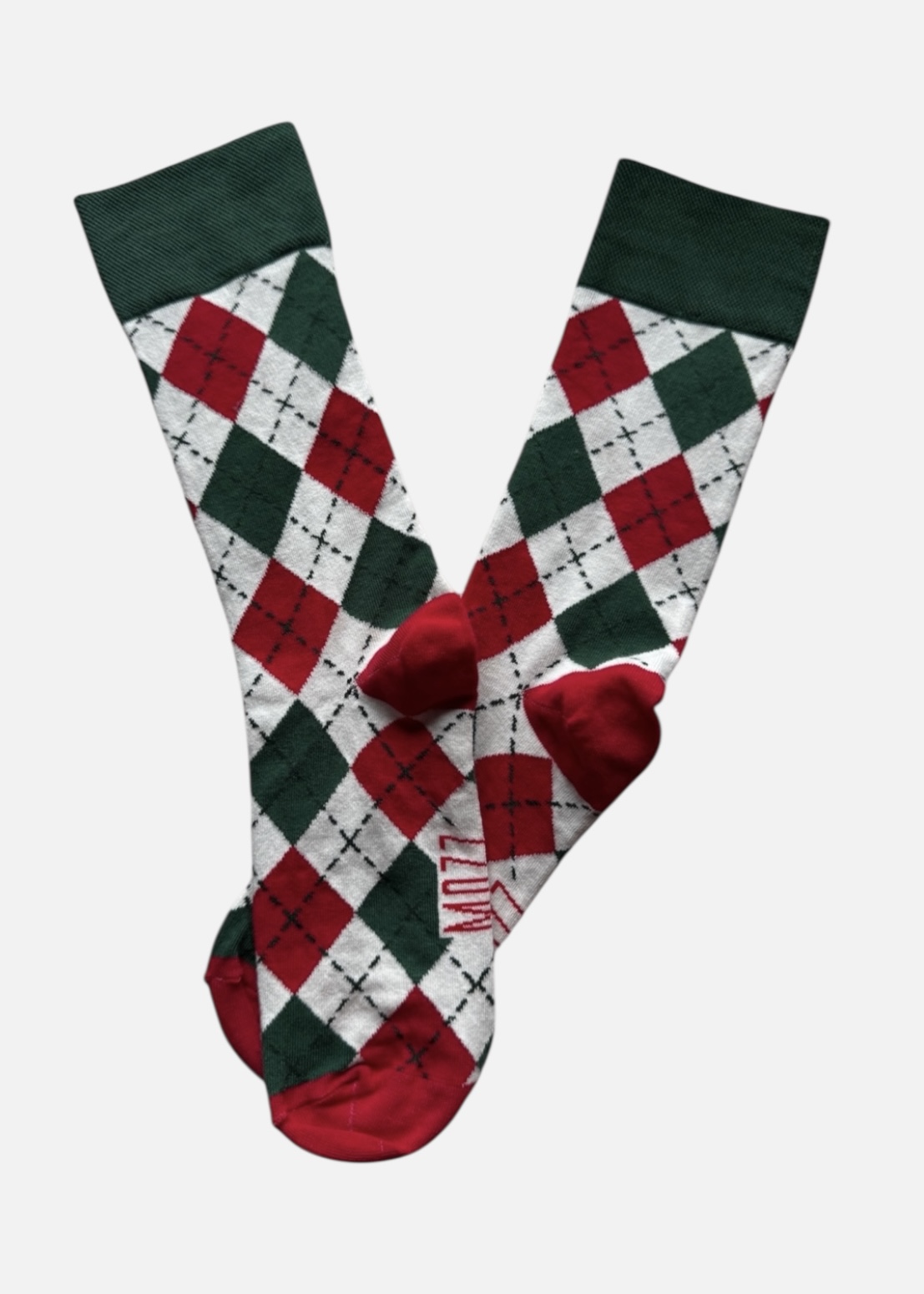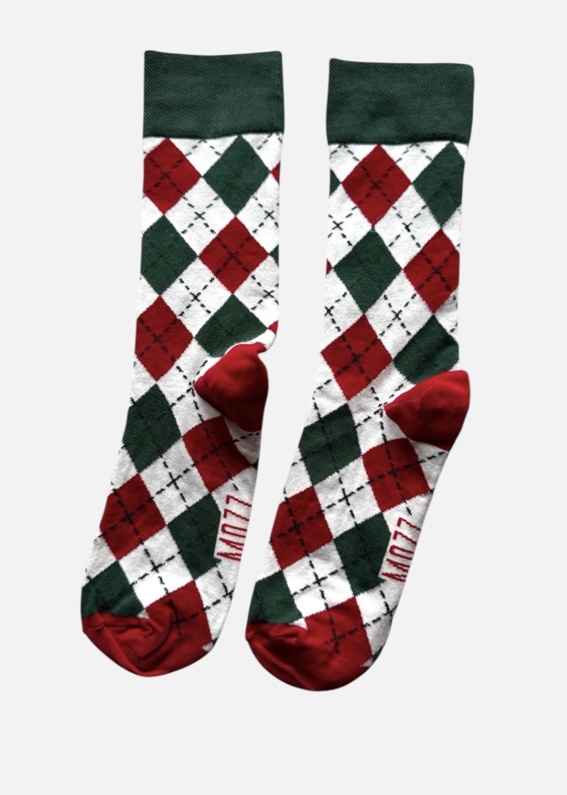 Skarpetki białe w zielono czerwone romby z zielonym akcentem