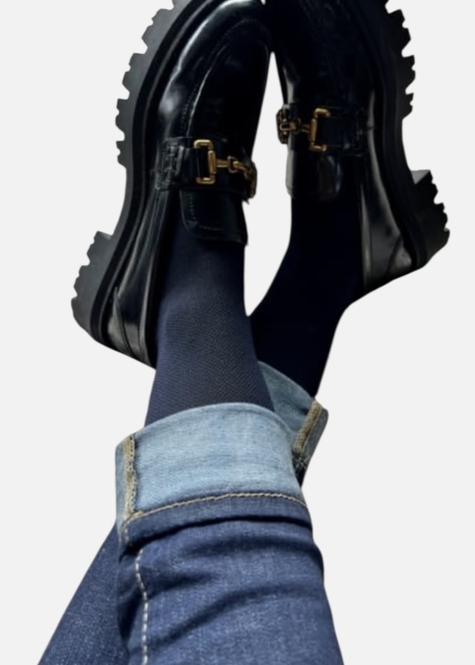 Skarpetki granatowe z bawełny merceryzowanej ażurowe