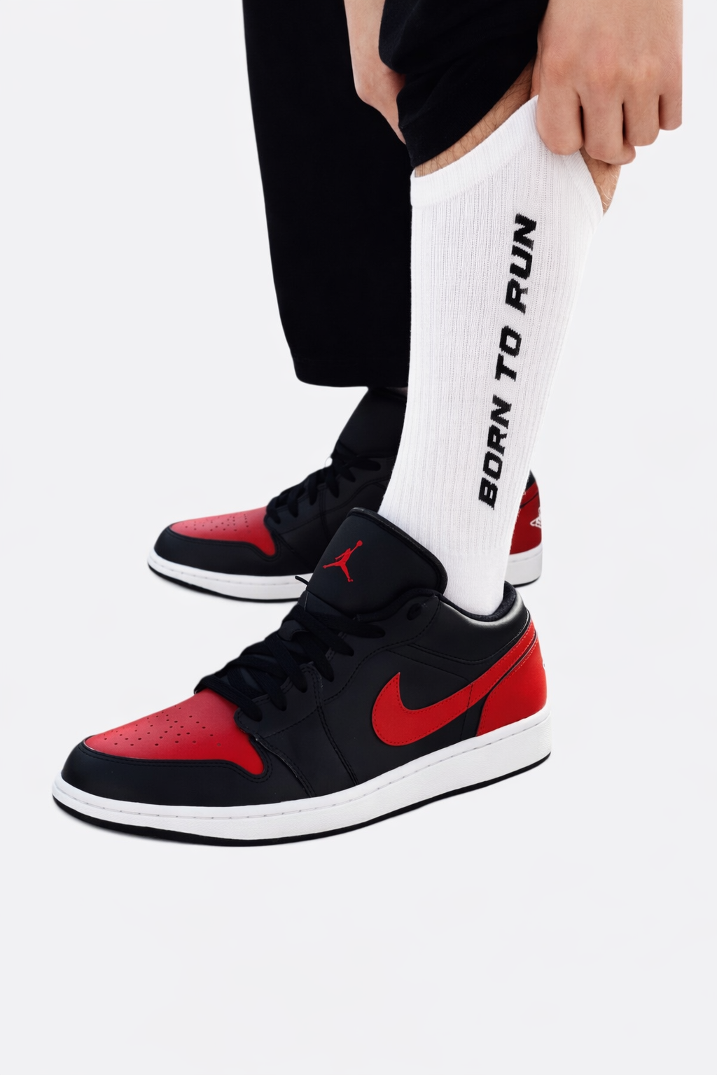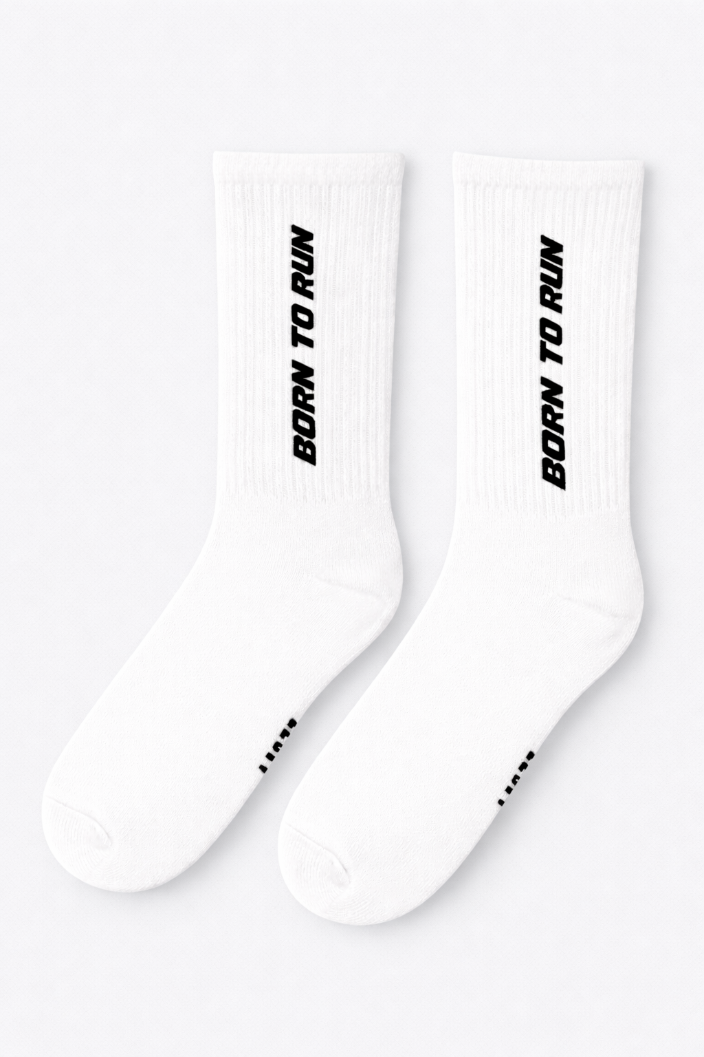 Dla tych, którzy kochają ruch i nie boją się wyzwań! Nasze białe sportowe skarpetki ribowane z dynamicznym napisem BORN TO RUN to idealny wybór dla biegaczy, miłośników sportu i każdego, kto ceni sobie aktywny styl życia. Klasyczny design w połączeniu z motywującym przesłaniem sprawia, że staną się one Twoim ulubionym dodatkiem – zarówno na trening, jak i na co dzień.